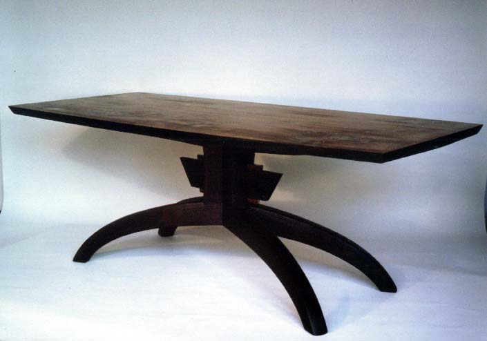 Mitred Pedestal Table Dining Table is one of a series of tables at the beginning of my design career. The table re-iterates my interest in form and structure, materials and process to create a visual tension or anomoly.