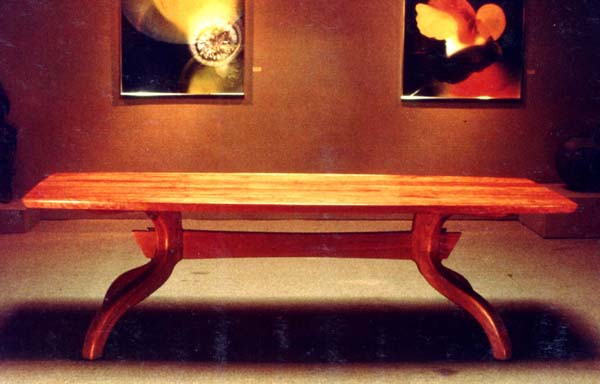Mitred Trestle Dining Table is one of a series of tables at the beginning of my design career. The table re-iterates my interest in form and structure, materials and process to create a visual tension or anomoly.