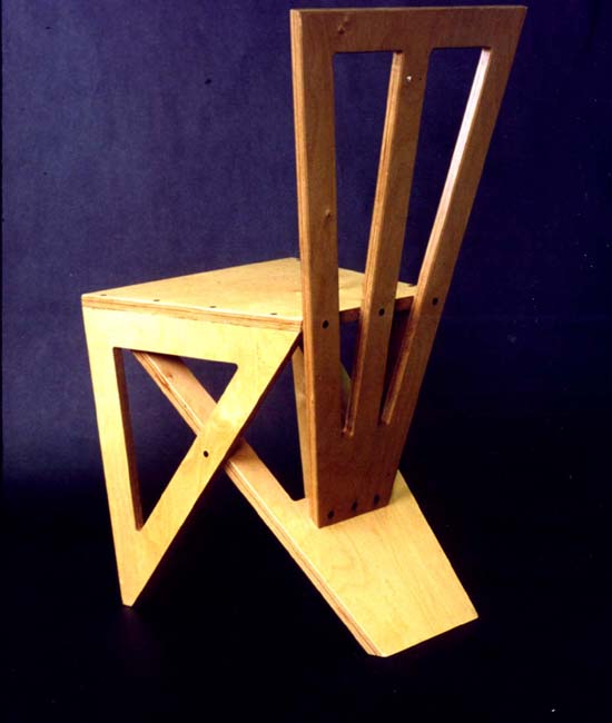 Origami Chair is an investigation into the nature of triangulated structures. It uses an economy of means and materials to create a simple, well-engineered chair. the chair is constructed baltic birch plywood.